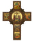 Wooden blessing cross containing synthesis of seriograph icons in canvas