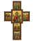 Wooden blessing cross containing synthesis of seriograph icons in canvas