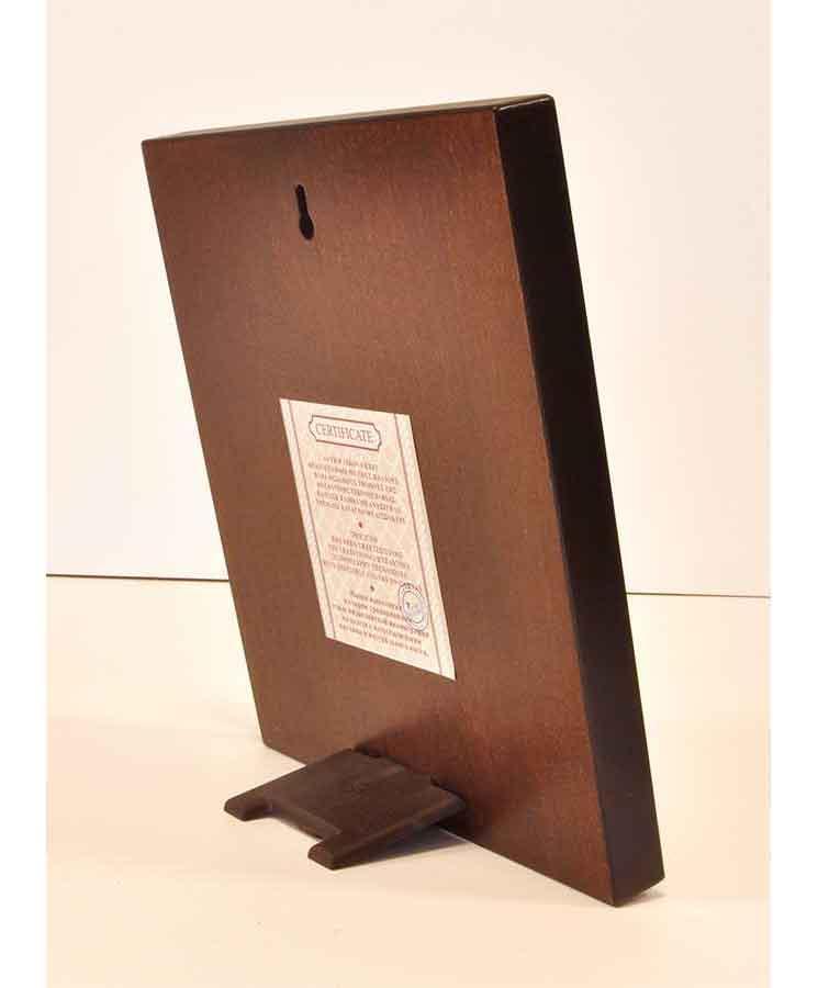 Seriograph icon crafted in canvas with gold background on carved wood.