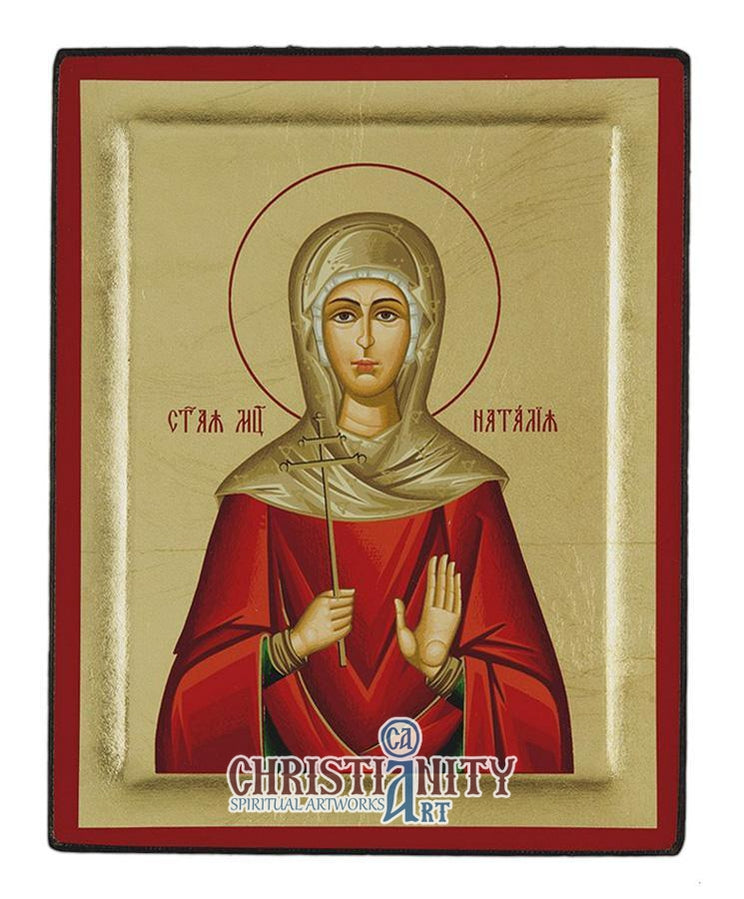 Saint Natalia was the wife of Saint Andrianos and martyred beside her husband who became a Christian whilst admiring the faith of 23 Christians who were tortured and did not renounce their faith in Christ, during the reign of Emperor Maximilian. She buried the body of Adrianos and was buried next to him, as Christian martyr.